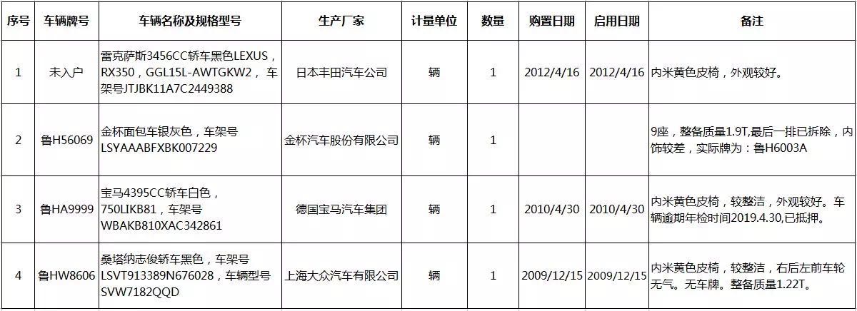 1、車輛4臺整體拍賣(詳見清單),參考價49萬元,保證金10萬元。