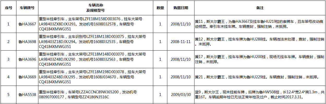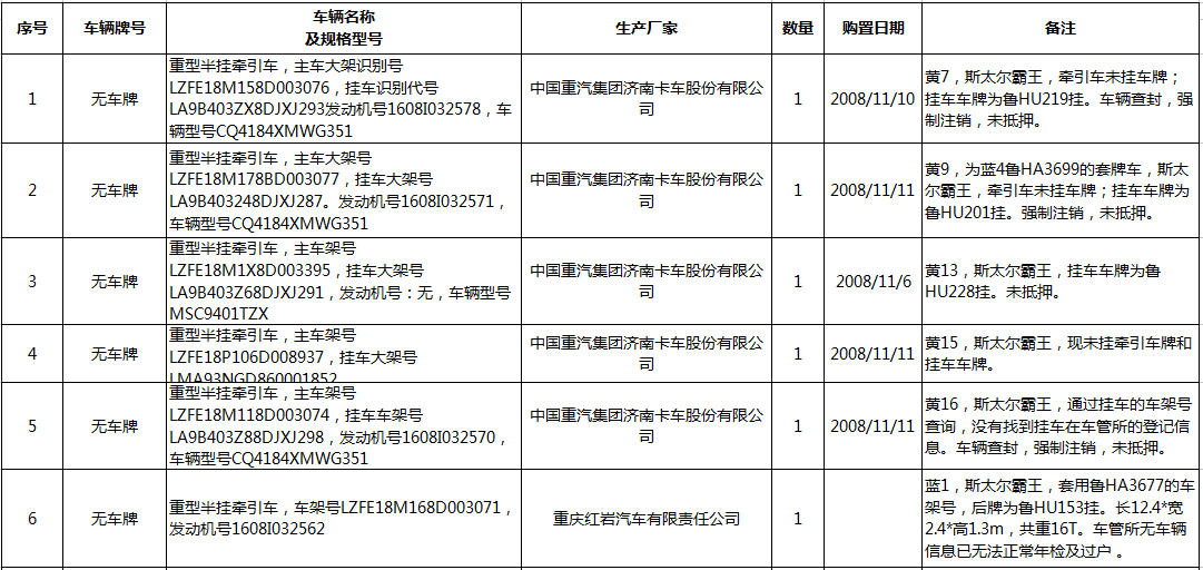 7、無手續(xù)車輛15臺(詳見清單),參考價17.6萬元,保證金4萬元。