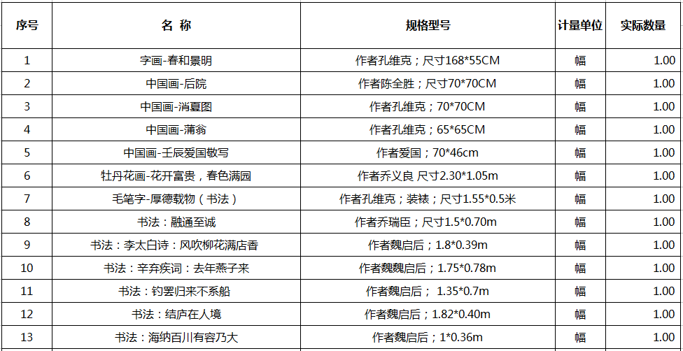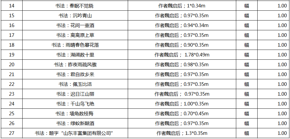 8、字畫一宗(詳見清單),參考價162萬元,保證金20萬元。