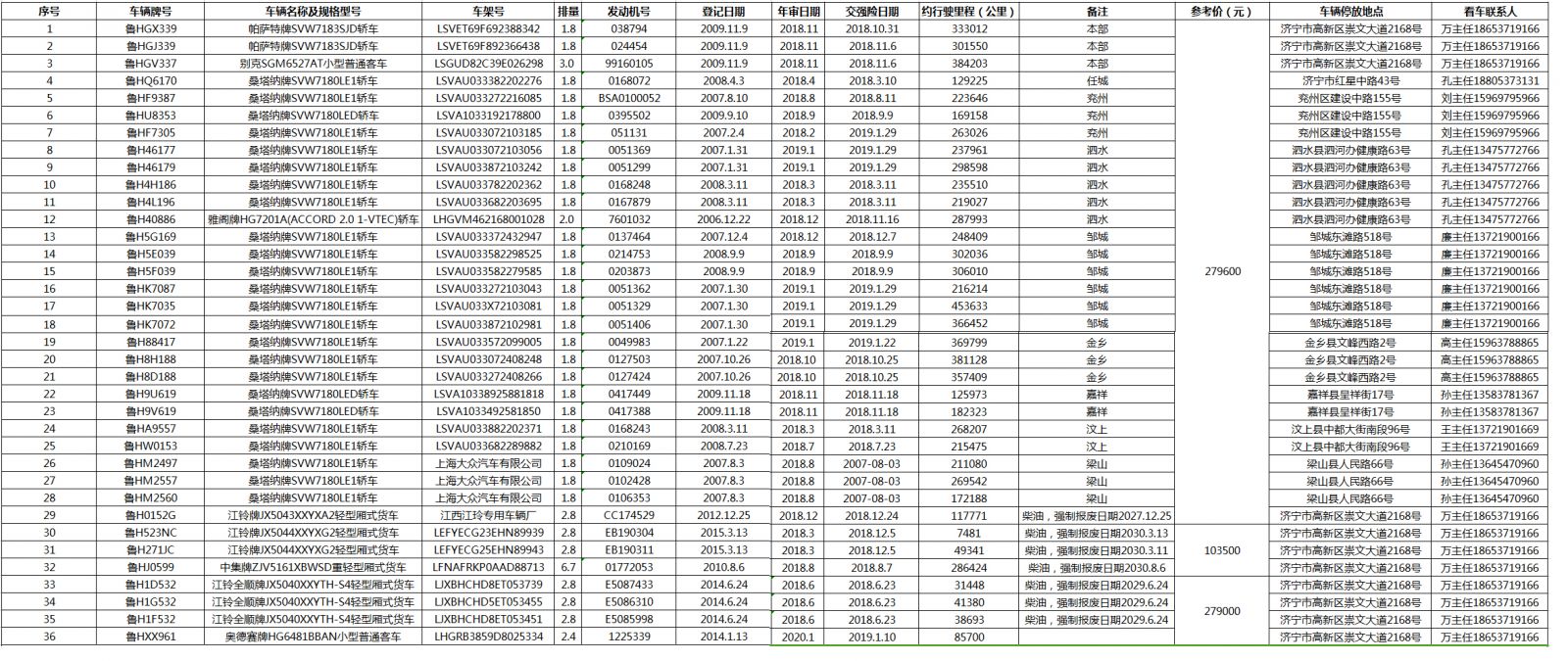 (表格信息僅供參考,車輛以現(xiàn)狀為準(zhǔn)進(jìn)行拍賣)