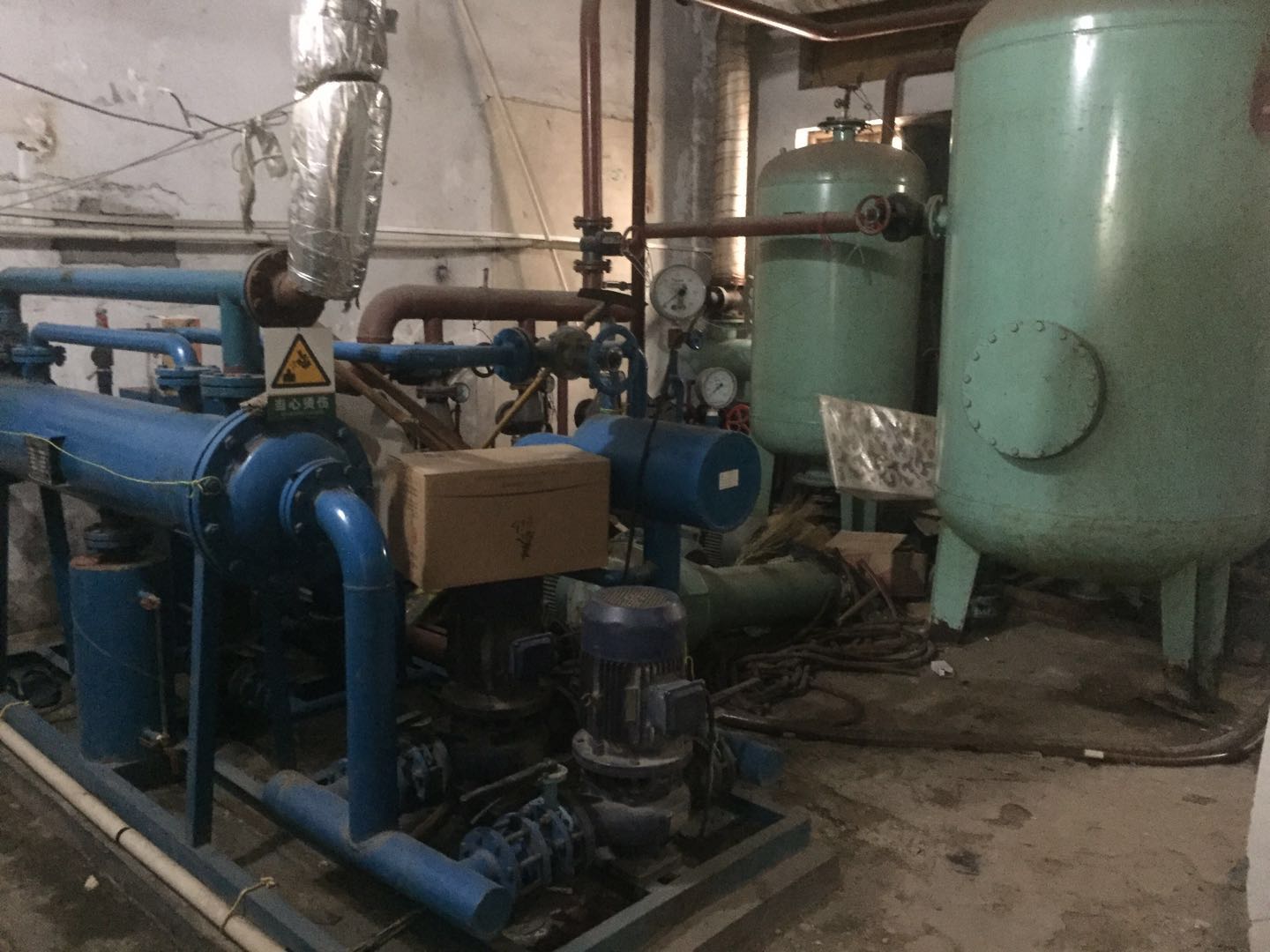 2.一套換熱站(包含換熱機組1臺/套,板式換熱器1臺,三相異步電動機5臺,全自動囊式落地膨脹水箱2臺,電熱機組控制柜2臺,污水處理器1臺),參考價:3.1萬元。