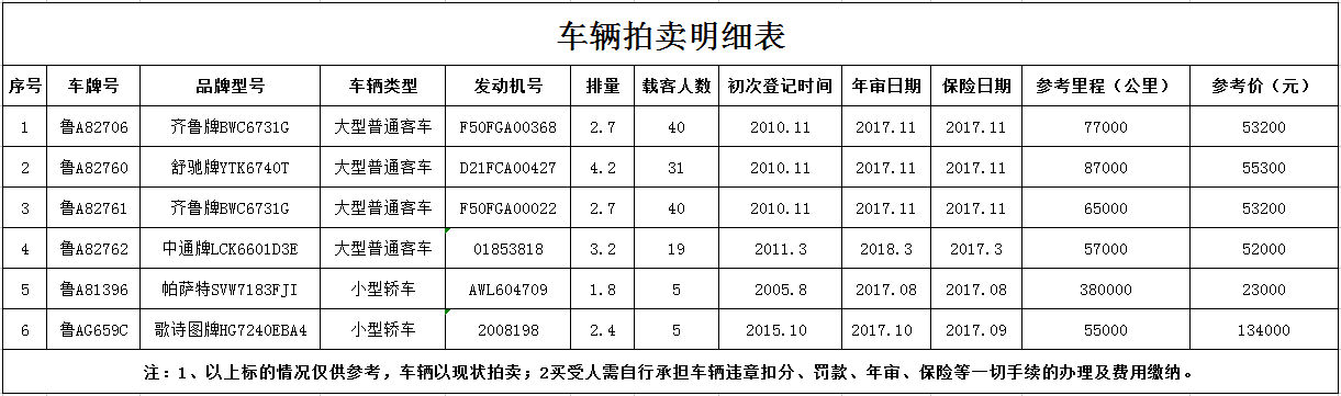 受委托,我公司定于近期公開拍賣車輛一宗(車輛品牌類型有:舒馳牌、齊魯牌、中通牌、帕薩特)。